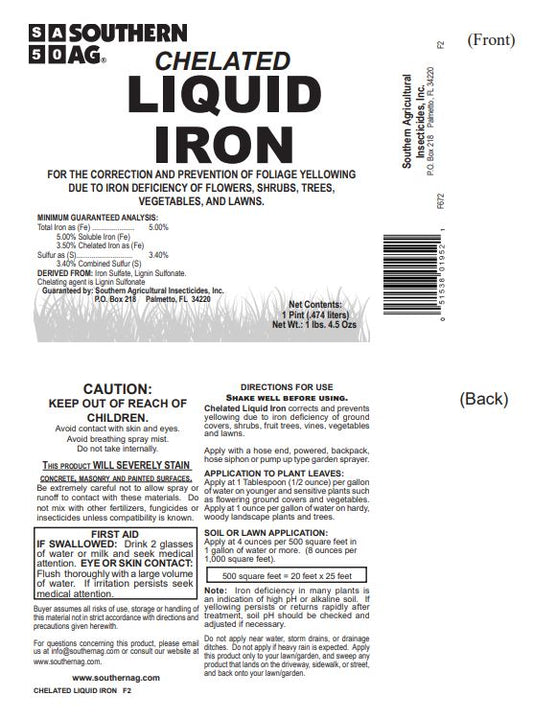 Southern Ag Chelated Liquid Iron, 1 Gallon Bottle