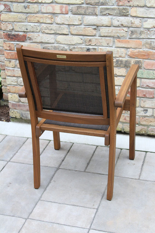 Outdoor Interiors 10555DK Eucalyptus & Brown Sling Stacking Armchair