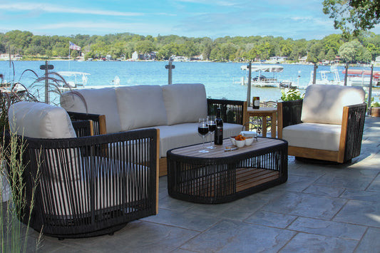 Outdoor Interiors TNA8765 Black Rope and Teak Sofa