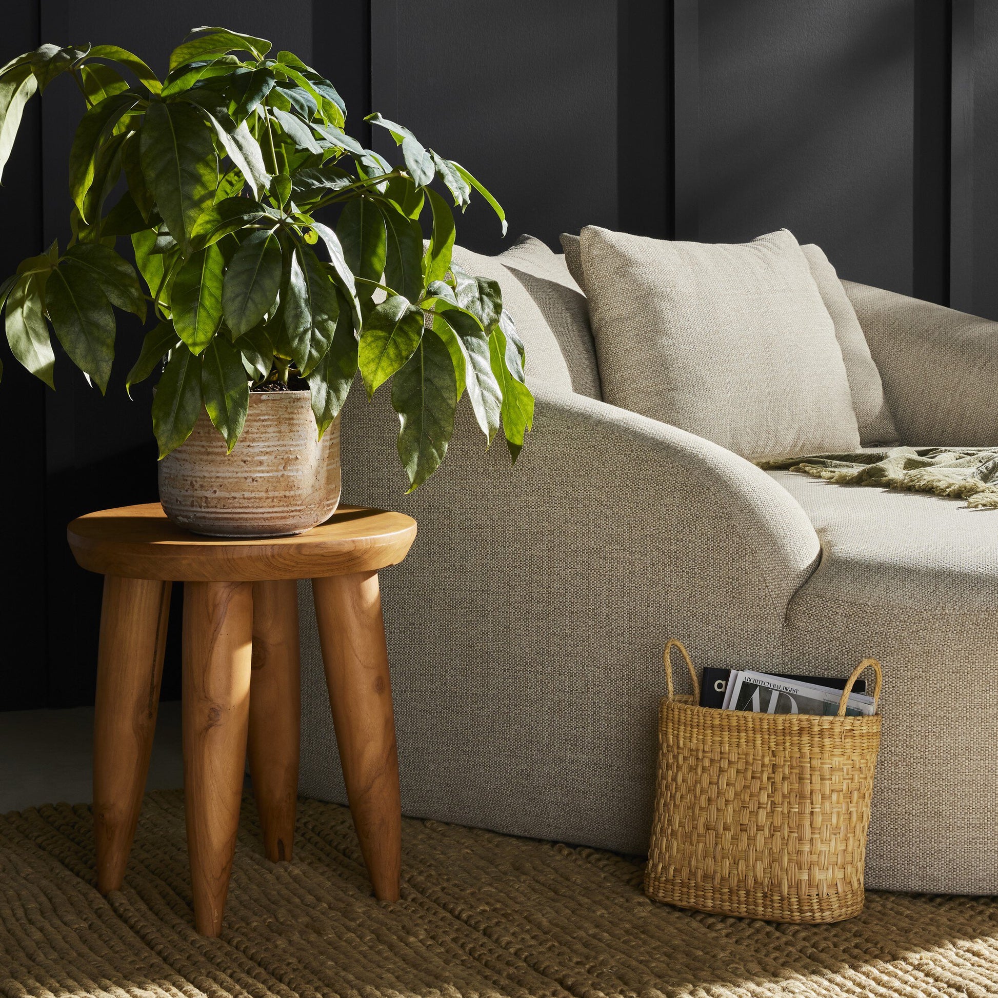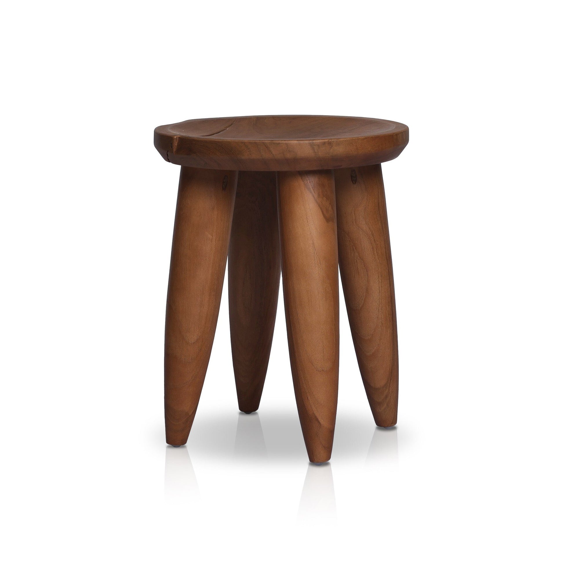 Inspired by West African design, an outdoor-friendly end table made from solid aged teak flaunts natural knots, holes and graining reflective of its rich roots. Wood texture, color and graining will vary from piece to piece, and surfaces will naturally range in height up to one inch – again speaking to teak’s beautifully organic nature. Cover or store inside during inclement weather and when not in use. Dimensions -16in Width x 16in Depth x 19.842in Height. Weight: 19.842lbs