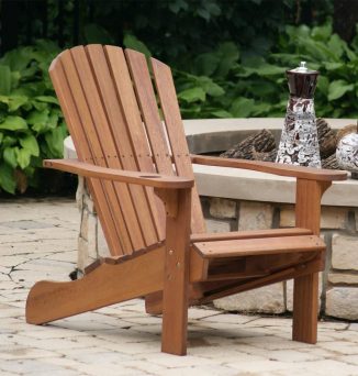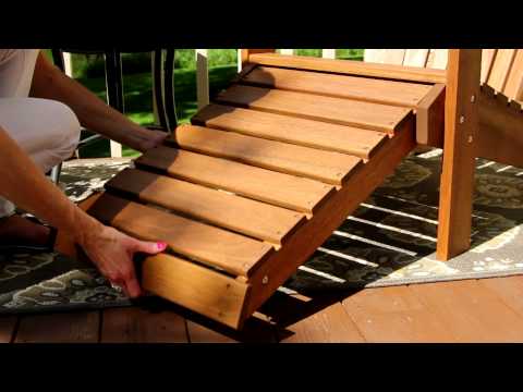 The Eucalyptus wood Adirondack Chair with Built-in Ottoman is made from plantation-grown eucalyptus wood and finished with a beautiful brown umber stain for long-lasting outdoor use and outstanding durability in every climate.