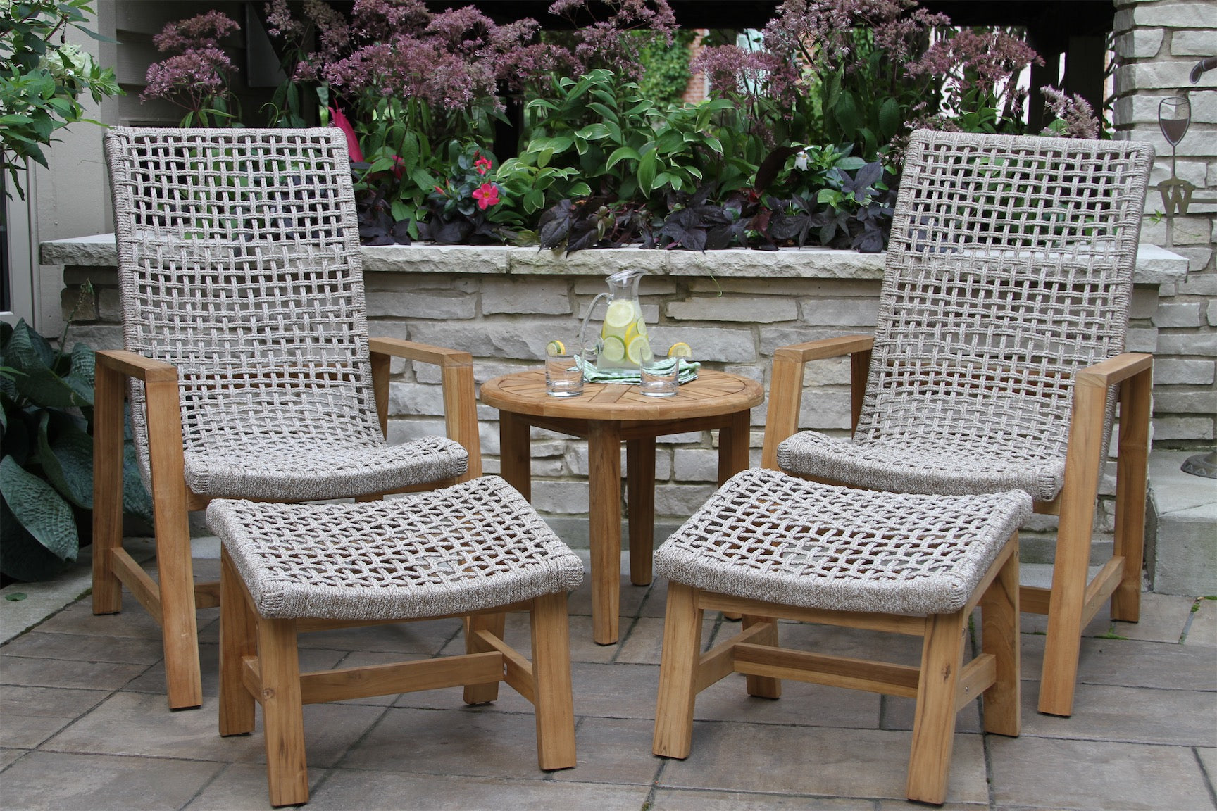 FSC Certified Teak Hardwood, UV Stabilized Nautical Polyester Rope, Powder-Coated Aluminum Frame, Protective Resin Foot Pads& Stainless-Steel Hardware