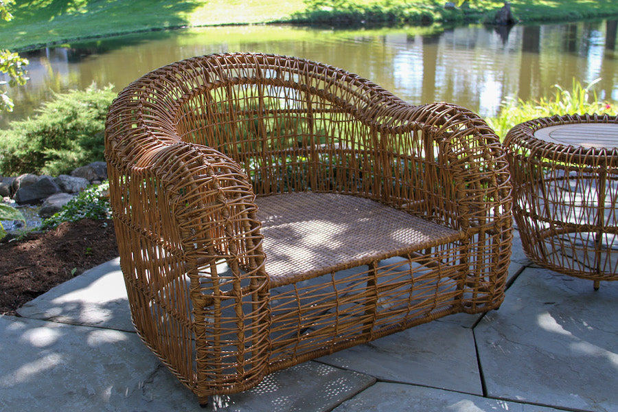 The “On the Vine” Set brings the luxury vineyard-inspired look to any patio. Fashioned with handwoven butterscotch-colored wicker and a deep breezy aesthetic. The chairs come fully assembled.