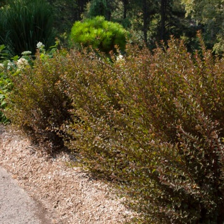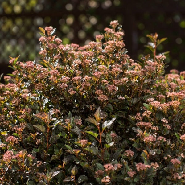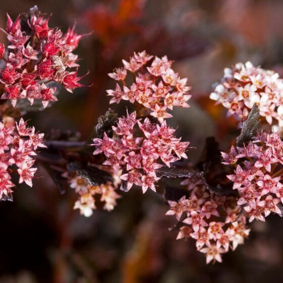 Introduce a pop of rich, year-round color with Little Devil™ Ninebark, a compact and exceptionally tough deciduous shrub. This dwarf variety boasts dense, fine-textured, burgundy-red foliage that retains its deep color all season long, making it a powerful contrast against other green plants. In early summer, it is covered in charming clusters of pinkish-white, spirea-like flowers that attract butterflies and other pollinators. After the leaves fall, the plant continues to provide visual interest with its attractive, peeling, tan-colored bark. As an adaptable and low-maintenance native cultivar, Little Devil™ Ninebark is mildew and pest-resistant, drought-tolerant once established, and highly deer-resistant. Its tidy, rounded form is perfect for hedges, mass plantings, or adding a splash of color to foundation plantings.
