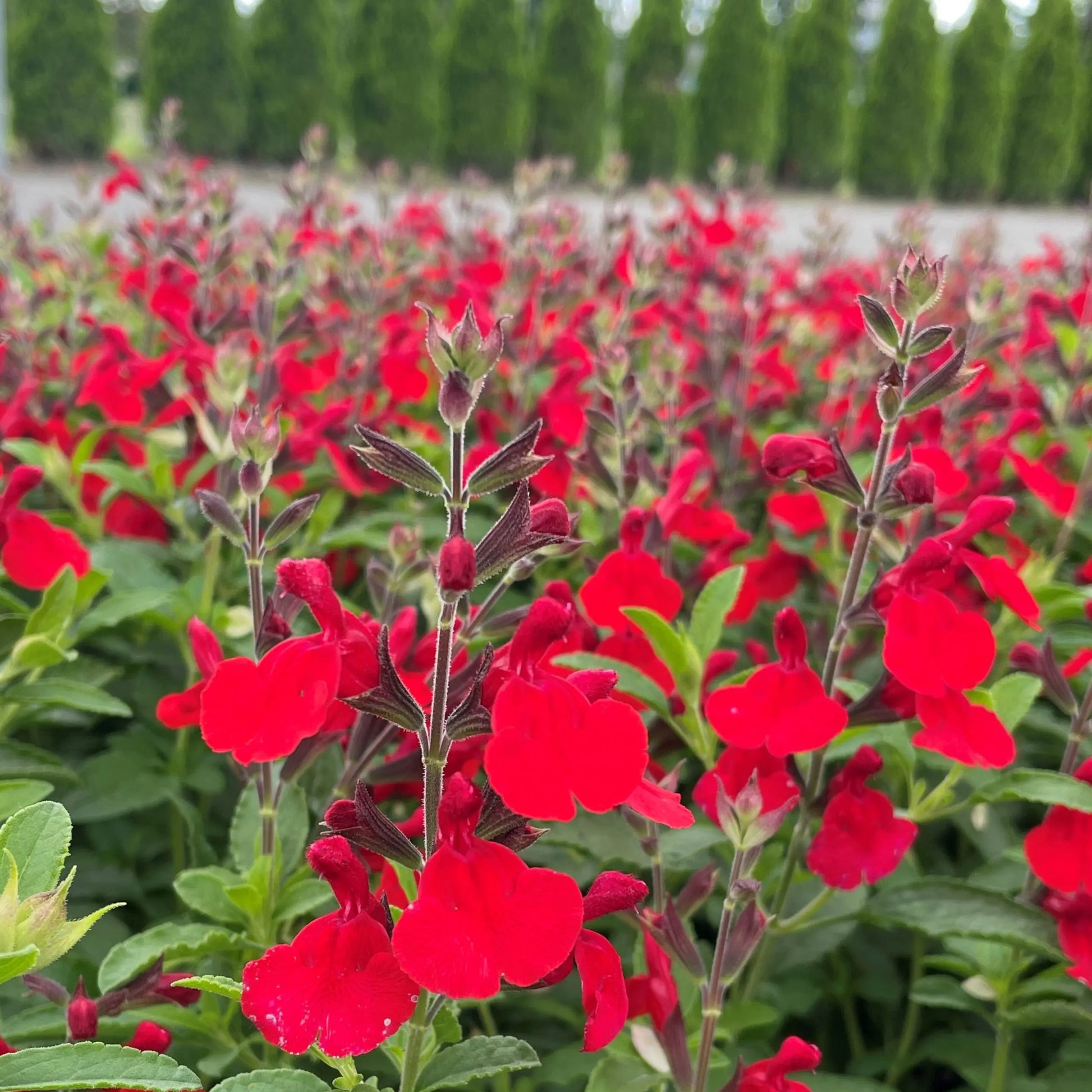 Bring a blaze of non-stop color to your garden with 'Radio Red' Salvia (Salvia greggii 'Radio Red'), a compact and vigorous autumn sage. This semi-evergreen sub-shrub is celebrated for its exceptional flower power, producing a prolific display of vivid, two-lipped, brilliant red flowers from late spring through fall. Unlike many other autumn sages, 'Radio Red' maintains its intense color through the heat of summer and its neat, well-branched habit resists flopping, providing a continuous pop of color. Heat and drought-tolerant once established, this pollinator magnet is also notably resistant to deer, making it a low-maintenance, high-impact choice for borders, containers, and rock gardens.