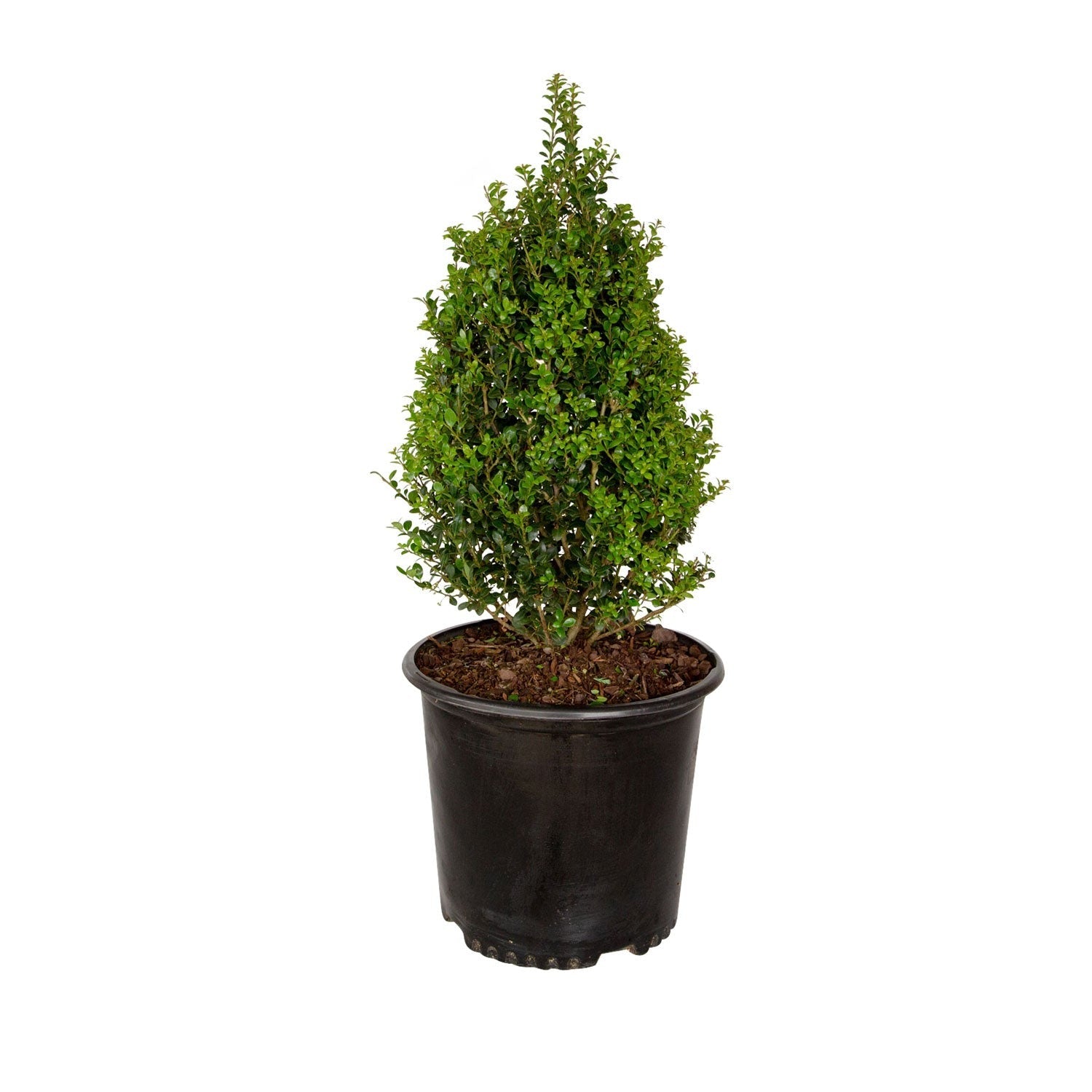 Achieve a classic, manicured look with Steeds Upright Holly (Ilex crenata 'Steeds'), a versatile and low-maintenance evergreen shrub. This adaptable plant is celebrated for its dense, upright, and naturally pyramidal form, which provides year-round structure and rich green foliage. A superior alternative to boxwood, Steeds Holly offers improved disease resistance and reliability. Perfect for creating elegant hedges, formal screens, or adding vertical accents to foundation plantings, this shrub maintains its tidy shape with minimal pruning. Tiny white flowers appear in spring, followed by small black berries in the fall on pollinated female plants, adding subtle seasonal interest and attracting birds.