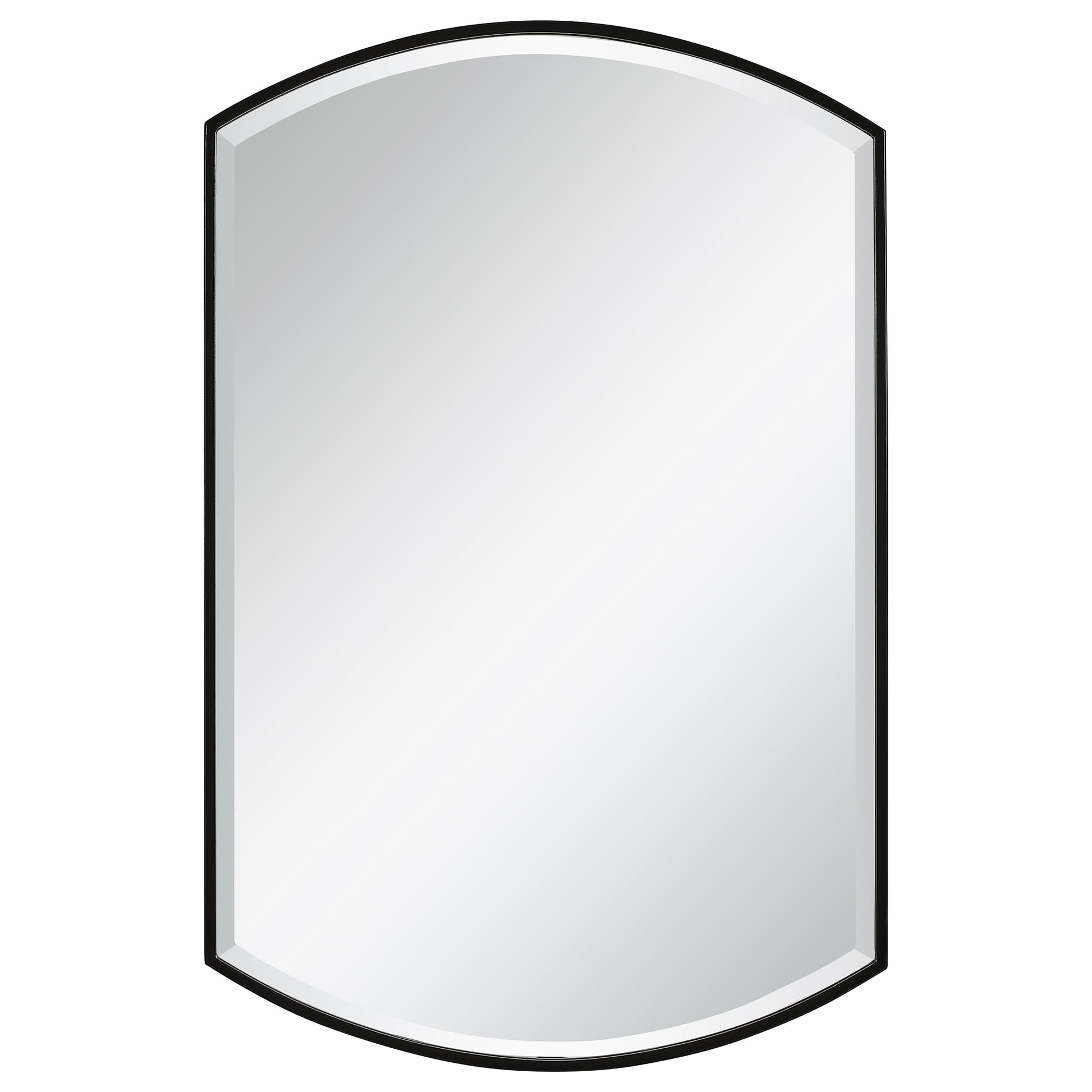 Simple yet versatile, this mirror features a curved iron frame with a sleek satin black finish and a generous 1 1/4" bevel. Dimensions - 1in Depth x 24in Width x 38in Height. Weight - 19lbs