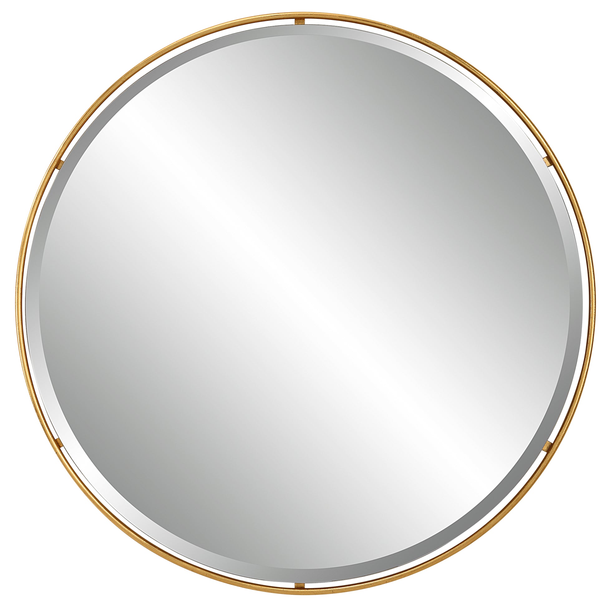 This mirror frame is forged from rounded metal and finished in a heavily antiqued gold leaf. Featuring a floating beveled mirror. Dimensions - 0.75in Depth x 42in Width x 42in Height. Weight - 21lbs