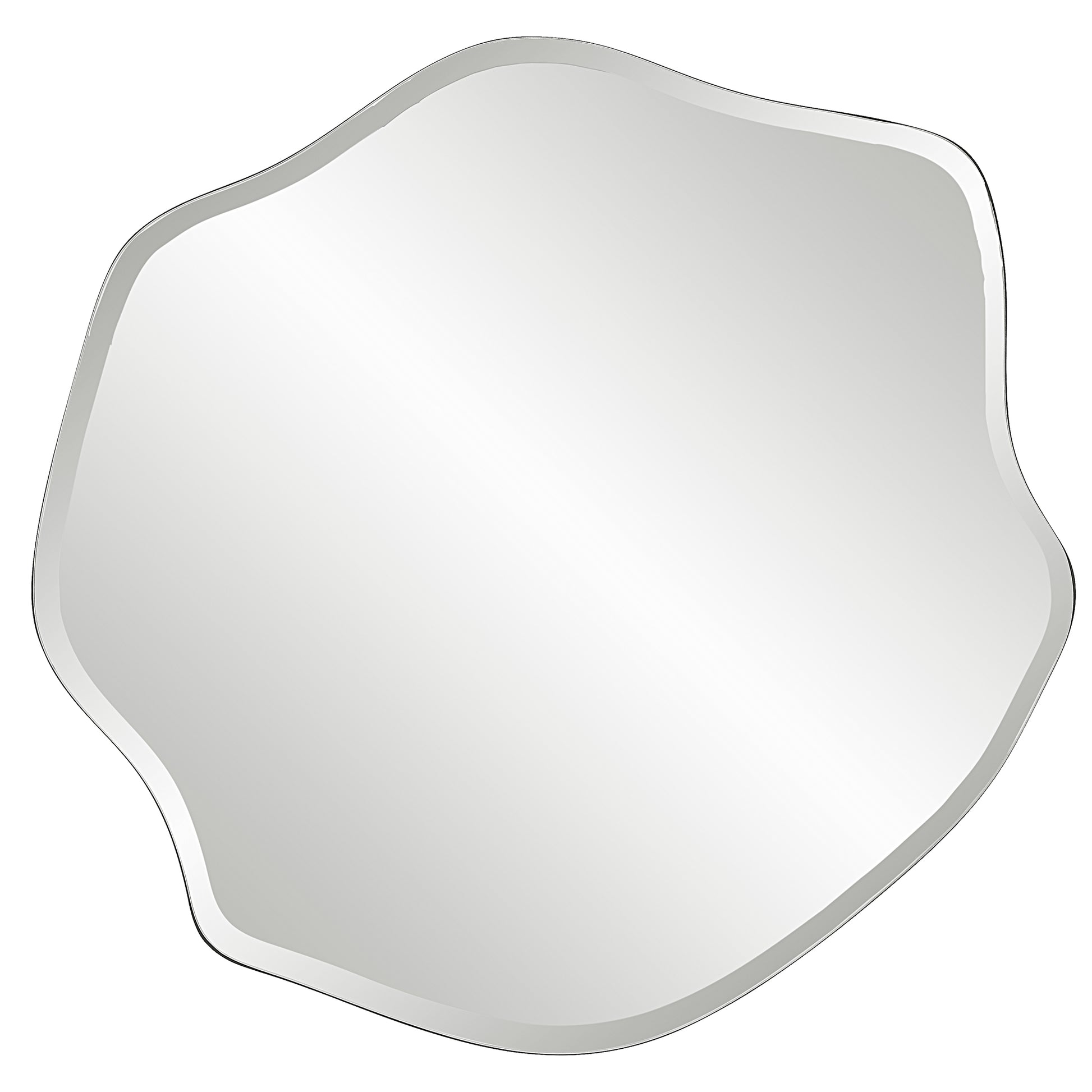 Set apart by its organic shape, the curiosity mirror displays a modern feel with a frameless design. Mirror features a .75" bevel. May be hung horizontal or vertical. Dimensions - 0.5in Depth x 31.25in Width x 31.625in Height. Weight - 21lbs