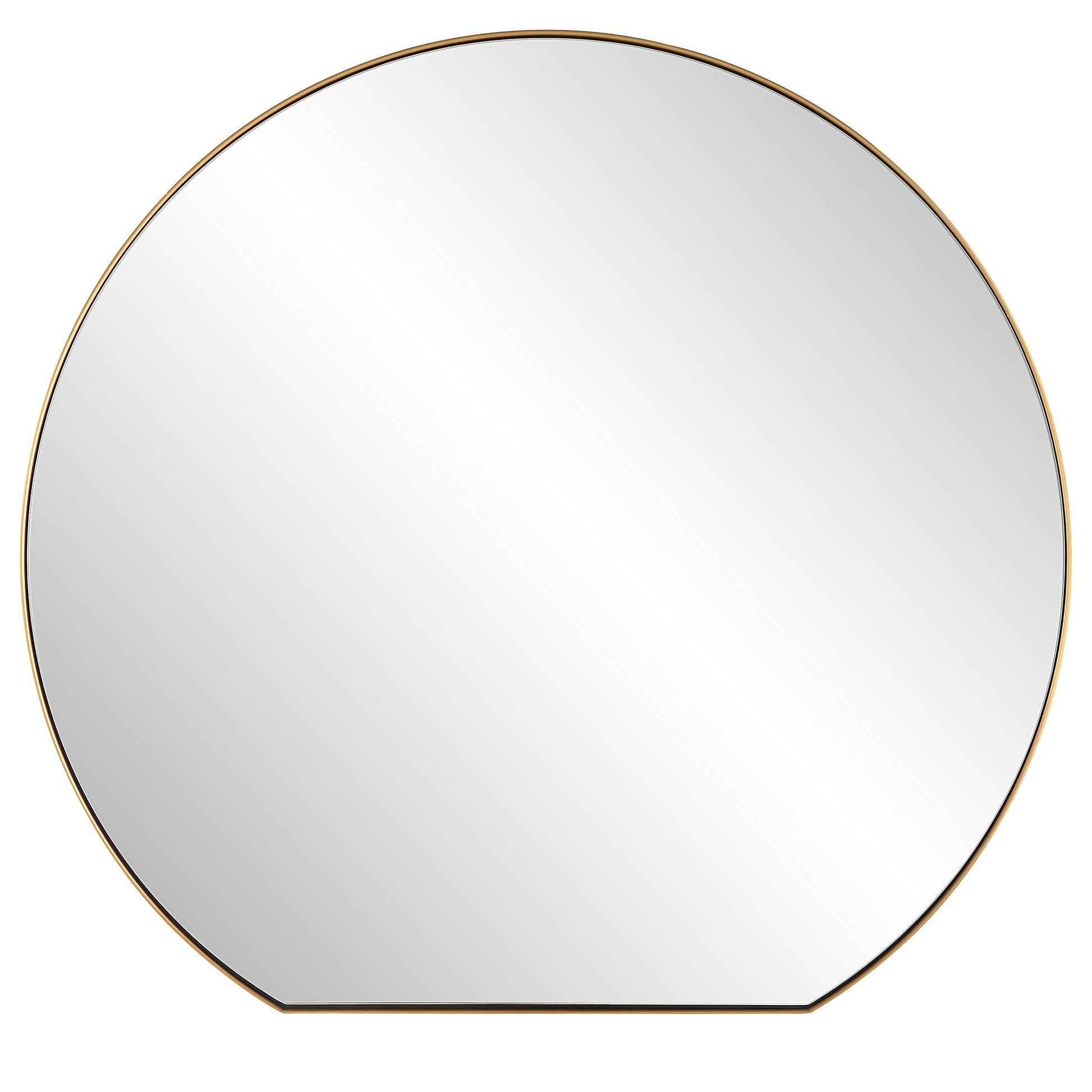 This sleek design features a plated brushed brass finish over a stainless steel frame that surrounds a floating polished edge mirror. Dimensions - 1in Depth x 30in Width x 28in Height. Weight - 22lbs