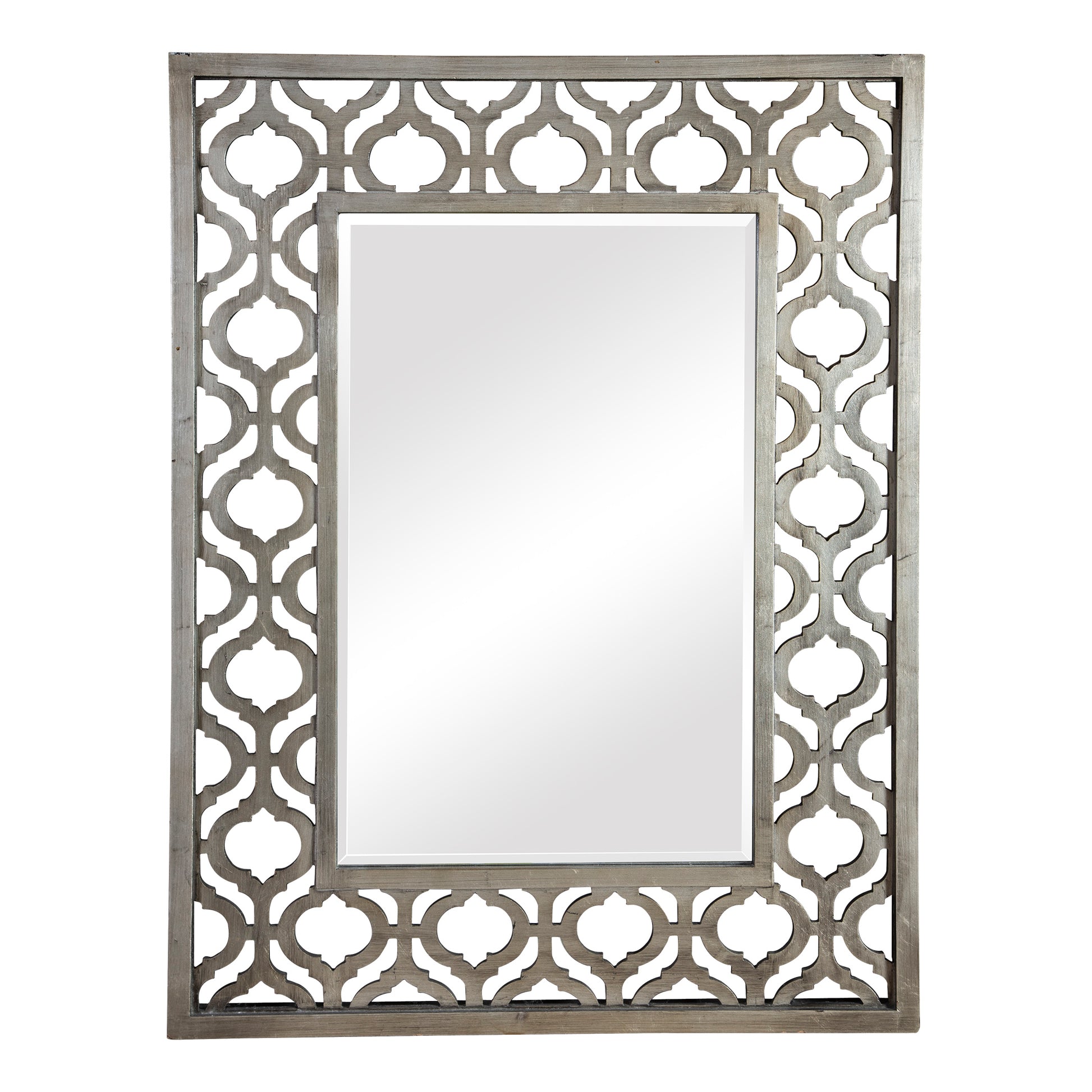 Frame features a decorative design finished in antiqued silver leaf with black undertones. Mirror is beveled and may be hung horizontal or vertical. Dimensions - 2.25in Depth x 30.75in Width x 40.375in Height. Weight - 20lbs